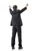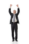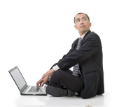 wesoły biznesmen siedzi na ziemi