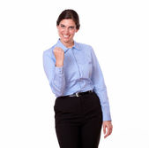 wysoki kąt widzenia portret piękne Młoda kobieta podając kciuki