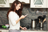 Zdjęcie "młoda kobieta w kuchni, słuchanie muzyki" może być wykorzystywane do celów osobistych i komercyjnych zgodnie z warunkami zakupionej licencji Royalty-free. Obraz jest dostępny do pobrania w jakości wysokiej rozdzielczości do 5760x3840.