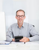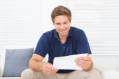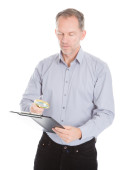 człowiek przed gazety rozmowy na telefon komórkowy