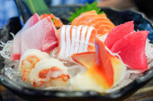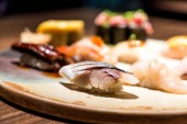 Świeże sushi w japońskiej restauracji. Jedzenie japońskie.