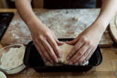Zdjęcie "Kobieta cukiernik ugniatając chleb ciasto na blat w kuchni. Gotowanie z mąki i masła. Jak zrobić ciasto chlebowe rękami. Procedura gotowania." może być wykorzystywane do celów osobistych i komercyjnych zgodnie z warunkami zakupionej licencji Royalty-free. Obraz jest dostępny do pobrania w jakości wysokiej rozdzielczości do 5760x3840.