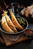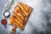 Zdjęcie "Scomber marynowany czosnkiem i szafranem na szarym tle." może być wykorzystywane do celów osobistych i komercyjnych zgodnie z warunkami zakupionej licencji Royalty-free. Obraz jest dostępny do pobrania w jakości wysokiej rozdzielczości do 5760x3840.