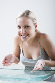 Zdjęcie "młoda kobieta przed wirtualnej tablicy" może być wykorzystywane do celów osobistych i komercyjnych zgodnie z warunkami zakupionej licencji Royalty-free. Obraz jest dostępny do pobrania w jakości wysokiej rozdzielczości do 5760x3840.