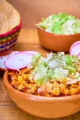 meksykański talerz enchilady z czerwonym sosem, orzeźwioną fasolą i ryżem