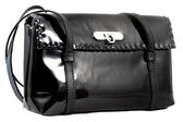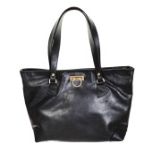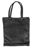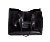 ręcznie robiona czarna skórzana torba shopper z mosiężnym zapięciem izolowana na białym tle