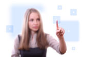 Zdjęcie "młoda kobieta dotyka nowoczesny panel" może być wykorzystywane do celów osobistych i komercyjnych zgodnie z warunkami zakupionej licencji Royalty-free. Obraz jest dostępny do pobrania w jakości wysokiej rozdzielczości do 5760x3840.