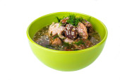 Zdjęcie "Kobieta kładzie rękę na stole Lokshina zupa z parą żeber (żeberka wieprzowe, figi, grzyby Shiitake, makaron ryżowy, ciemny sos sojowy)" może być wykorzystywane do celów osobistych i komercyjnych zgodnie z warunkami zakupionej licencji Royalty-free. Obraz jest dostępny do pobrania w jakości wysokiej rozdzielczości do 5760x3840.