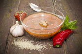 świeże pomidory i szklanka soku pomidorowego z bliska na drewnianym stole