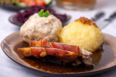 Zdjęcie "pieczona wieprzowina bawarska z pierogami" może być wykorzystywane do celów osobistych i komercyjnych zgodnie z warunkami zakupionej licencji Royalty-free. Obraz jest dostępny do pobrania w jakości wysokiej rozdzielczości do 5760x3840.