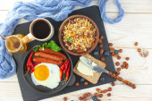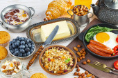 Zdjęcie "Zdrowe śniadanie na starym tle. Koncepcja smacznej i zdrowej żywności." może być wykorzystywane do celów osobistych i komercyjnych zgodnie z warunkami zakupionej licencji Royalty-free. Obraz jest dostępny do pobrania w jakości wysokiej rozdzielczości do 5760x3840.