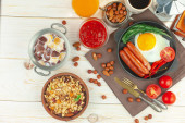 Zdrowe śniadanie na starym tle. Koncepcja smacznej i zdrowej żywności.