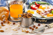 Zdjęcie "Zdrowe śniadanie na starym tle" może być wykorzystywane do celów osobistych i komercyjnych zgodnie z warunkami zakupionej licencji Royalty-free. Obraz jest dostępny do pobrania w jakości wysokiej rozdzielczości do 5760x3840.