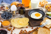 Zdjęcie "Zdrowe śniadanie na starym tle" może być wykorzystywane do celów osobistych i komercyjnych zgodnie z warunkami zakupionej licencji Royalty-free. Obraz jest dostępny do pobrania w jakości wysokiej rozdzielczości do 5760x3840.