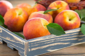 Dojrzałe brzoskwinie na starym tle