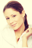 Zdjęcie "Młoda piękna kobieta w szlafrok" może być wykorzystywane do celów osobistych i komercyjnych zgodnie z warunkami zakupionej licencji Royalty-free. Obraz jest dostępny do pobrania w jakości wysokiej rozdzielczości do 5760x3840.