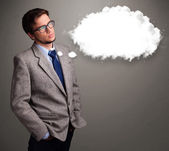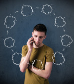 młody człowiek myśli z chmura obiegu wokół jego głowy