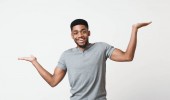 czarny facet wyciągając ręce dla a przytulić na niebieskim tle