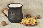 Angielski styl rano herbata lub kawa z mlekiem w naczyniach ceramicznych