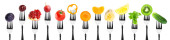 Zdjęcie "Collage żywności na widelce na białym tle" może być wykorzystywane do celów osobistych i komercyjnych zgodnie z warunkami zakupionej licencji Royalty-free. Obraz jest dostępny do pobrania w jakości wysokiej rozdzielczości do 5760x3840.