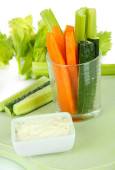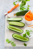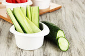 jasne świeże warzywa pokrojone w plastry w miski na drewniany stół szczegół