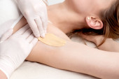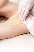 Piękna młoda biała kobieta goli nogi nożem na białym tle