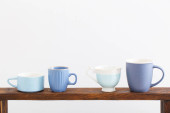 Zdjęcie "Białe porcelanowe kubki i figurka ptaka robaczka na tacy na drewnianym szarym stole." może być wykorzystywane do celów osobistych i komercyjnych zgodnie z warunkami zakupionej licencji Royalty-free. Obraz jest dostępny do pobrania w jakości wysokiej rozdzielczości do 5760x3840.