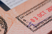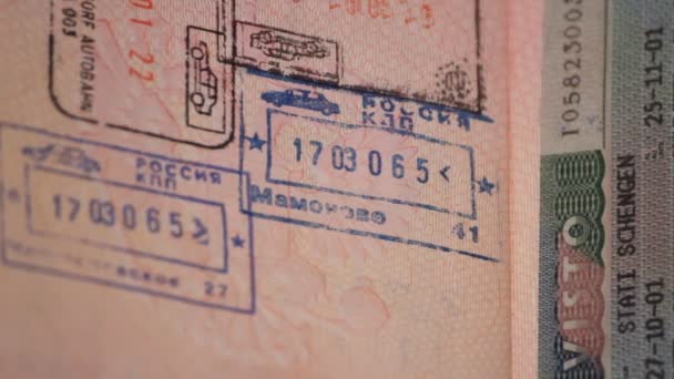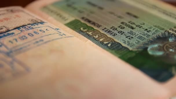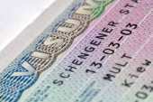 Wiza Schengen w paszporcie zbliżenie na białym tle