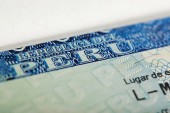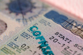 Wiza Schengen w paszporcie zbliżenie na białym tle