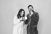 Zdjęcie "Łatwo zaparzyć specjalną kawę. Para w domowych ciuchach lubi poranną kawę. Mężczyzna i kobieta piją kawę. Przytulne chwile. Piwo wsadowe nalewa się na kawę stworzoną przy użyciu pomocy pomocy maszyny." może być wykorzystywane do celów osobistych i komercyjnych zgodnie z warunkami zakupionej licencji Royalty-free. Obraz jest dostępny do pobrania w jakości wysokiej rozdzielczości do 5760x3840.