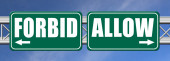 Zakazać i pozwolić jako różne wybory w życiu - przedstawione jako słowa Zakazać, pozwalają na drodze symbolizować podejmowanie decyzji i wybierając albo Zakazać lub pozwolić jako opcja, Ilustracja 3D