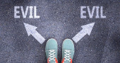 Zdjęcie "Złe i złe, jak różne wybory w życiu - wyobrażone jako słowa Zły, zły na drodze symbolizującej podejmowanie decyzji i wybieranie albo zły lub zły jako opcja, Ilustracja 3D" może być wykorzystywane do celów osobistych i komercyjnych zgodnie z warunkami zakupionej licencji Royalty-free. Obraz jest dostępny do pobrania w jakości wysokiej rozdzielczości do 5760x3840.