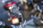 piękny szczegół motocykla. lustro. W parku w przyrodzie