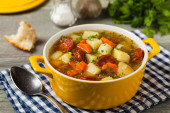 Tradycyjna zupa ziemniaczana. Widok z przodu.