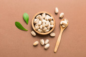Obierane pistacje w zaprawie na białym tle. Mieszkanie.