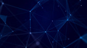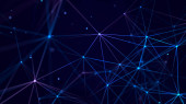 Struktura połączeń sieciowych Przekazywanie danych. Streszczenie tła z przeplataniem kropki i linii. 3D