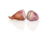 Kupa pf Cebuli żarówki i pół plasterki izolowane na białym tle, die wyciąć ścieżką wycinania