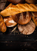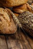 świeże pieczone bochenki chleba z kolcami na drewnianej powierzchni