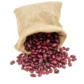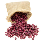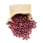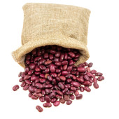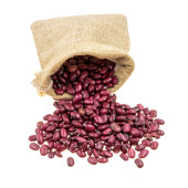 Fasola czerwona w workach jutowych (juta) izolowana na białym tle