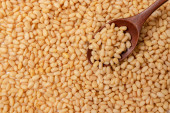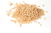 Orzeszki sosnowe. Niełuskane ziarna. Banda wariatów leży na białym tle..