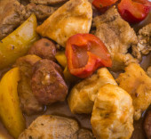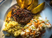 Zdjęcie "Obraz fajitos na żeliwnej patelni na drewnianym stoisku z zabytkowymi sztućcami i warzywami jako dekoracja na ciemnym tle" może być wykorzystywane do celów osobistych i komercyjnych zgodnie z warunkami zakupionej licencji Royalty-free. Obraz jest dostępny do pobrania w jakości wysokiej rozdzielczości do 5760x3840.