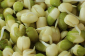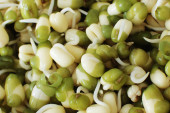 Kołki lub sadzonki fasoli mung w misce, zbliżenie.