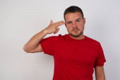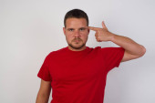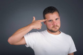 Zdjęcie "Mężczyzna wytykający palcem nieszczęśliwego pryszcza na czole, zakażenie głowy. Koncepcja pielęgnacji skóry." może być wykorzystywane do celów osobistych i komercyjnych zgodnie z warunkami zakupionej licencji Royalty-free. Obraz jest dostępny do pobrania w jakości wysokiej rozdzielczości do 5760x3840.