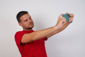 mężczyzna korzystający z telefonu komórkowego na czacie