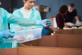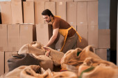 Wykwalifikowany biały pakujący pracujący w magazynie