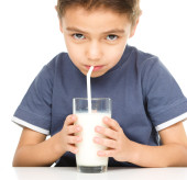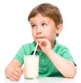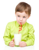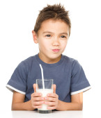 ładny chłopak ze szklanką mleka
