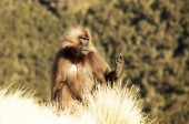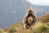 Zdjęcie "Blisko samicy małpy Gelada (Theropithecus gelada) siedzącej na skale przeciwko błękitnemu niebu w górach Simien, Etiopia." może być wykorzystywane do celów osobistych i komercyjnych zgodnie z warunkami zakupionej licencji Royalty-free. Obraz jest dostępny do pobrania w jakości wysokiej rozdzielczości do 5760x3840.