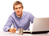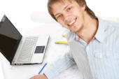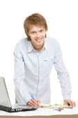 Zdjęcie "młody człowiek w miejscu pracy" może być wykorzystywane do celów osobistych i komercyjnych zgodnie z warunkami zakupionej licencji Royalty-free. Obraz jest dostępny do pobrania w jakości wysokiej rozdzielczości do 5760x3840.