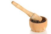 Nasiona kminku w zaprawie z tłustym zbliżeniem na białym tle