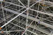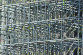 JOHOR, MALAYSIA -KWIECIEŃ 13, 2016: Rusztowanie używane jako tymczasowa konstrukcja nośna platformy, deskowania i konstrukcji na placu budowy. Używano go również jako platformy spacerowej dla pracowników.